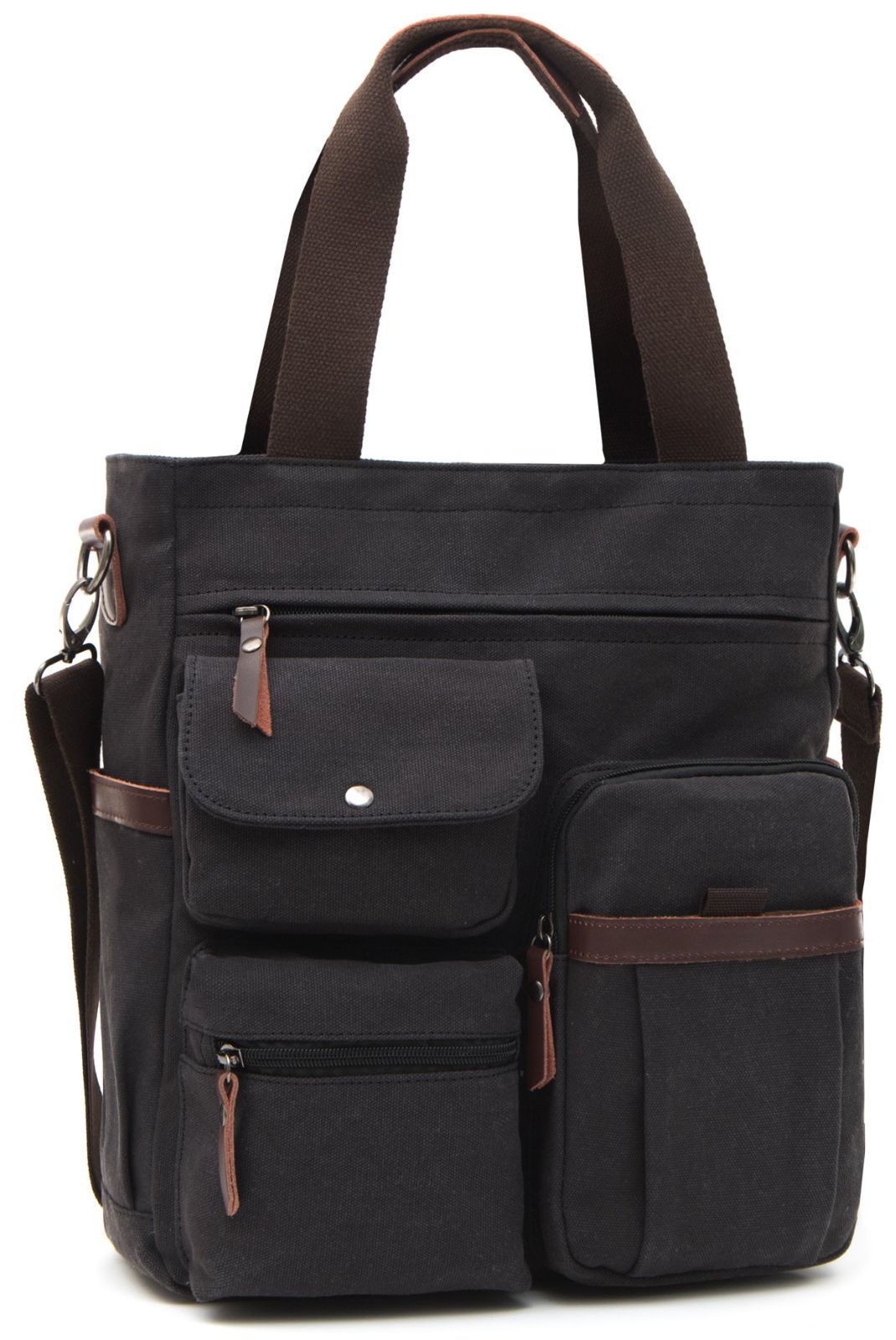 01 ブラック ミッケタ トートバッグ ショルダーバッグ メンズ 2 way 帆布 キャンバス カジュアル ストラップ付き