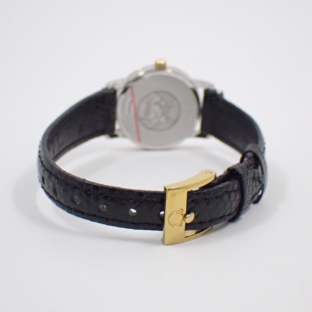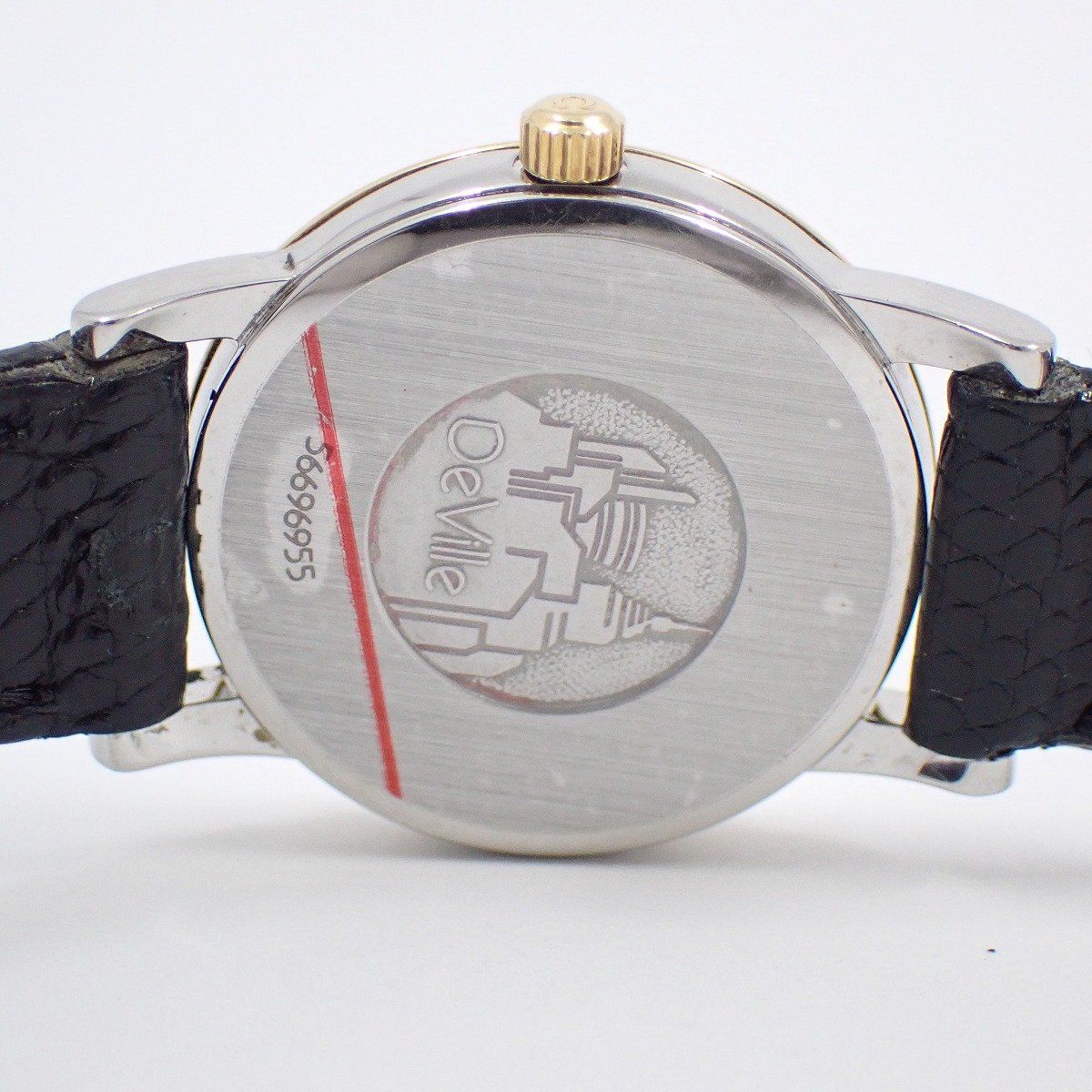 オメガ デビル プレステージ クォーツ レディース 腕時計 コンビ 白文字盤 社外ベルト 尾錠