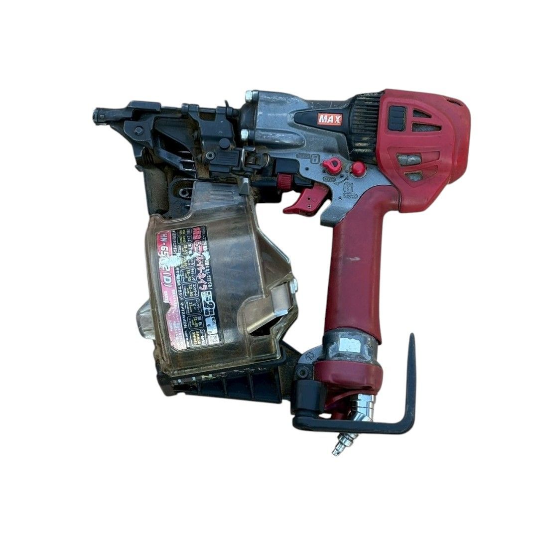 こちらは MAX スーパーネイラ HN-65N2-D 高圧釘打機 になります。65mm釘まで対応し、強力な高圧パワーと優れた連続打ち性能で、建築現場でも高い信頼を誇る人気モデルです。