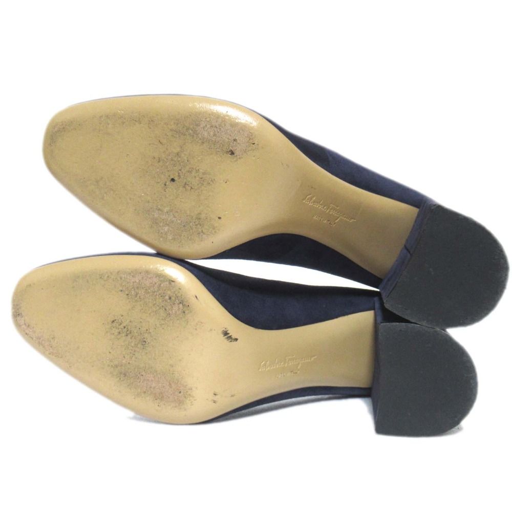Salvatore Ferragamo サルヴァトーレフェラガモ スエード チャンキーヒール ハイヒール パンプス サイズ5.5 C 約23 cm ネイビー レディース 古着