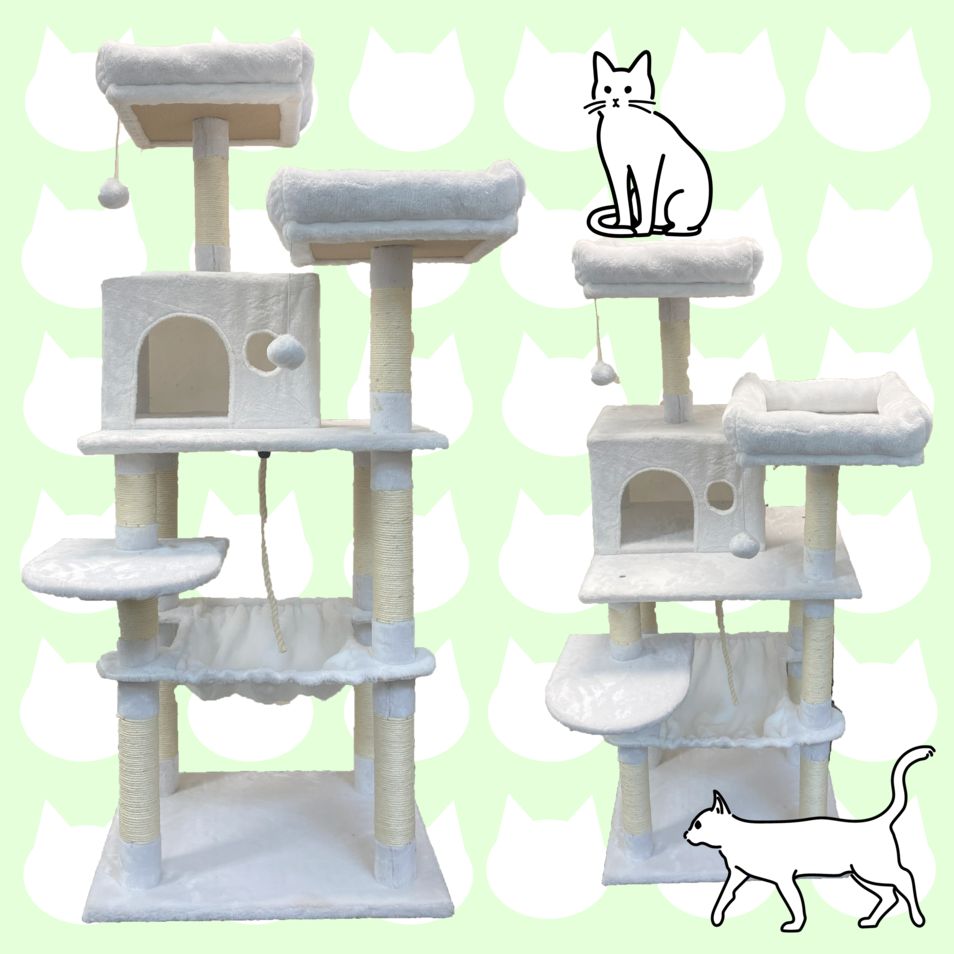 キャットタワー ホワイト 組み立て式 猫 ねこ ネコ ハンモック