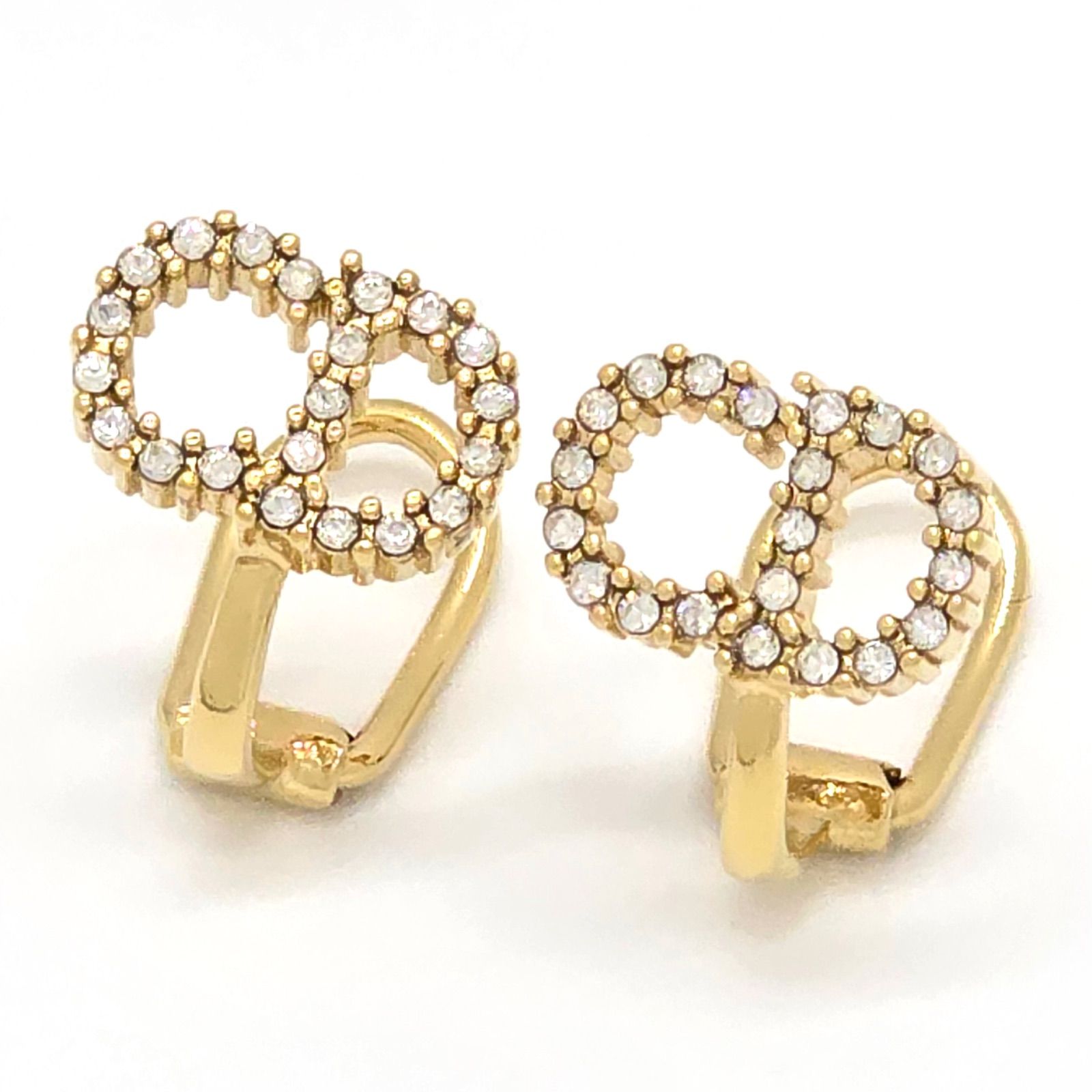DIOR ディオール Clair D Lune クレール ディー リュヌ クリップ イヤリング 両耳 ホワイト クリスタル ゴールドトーンメタル