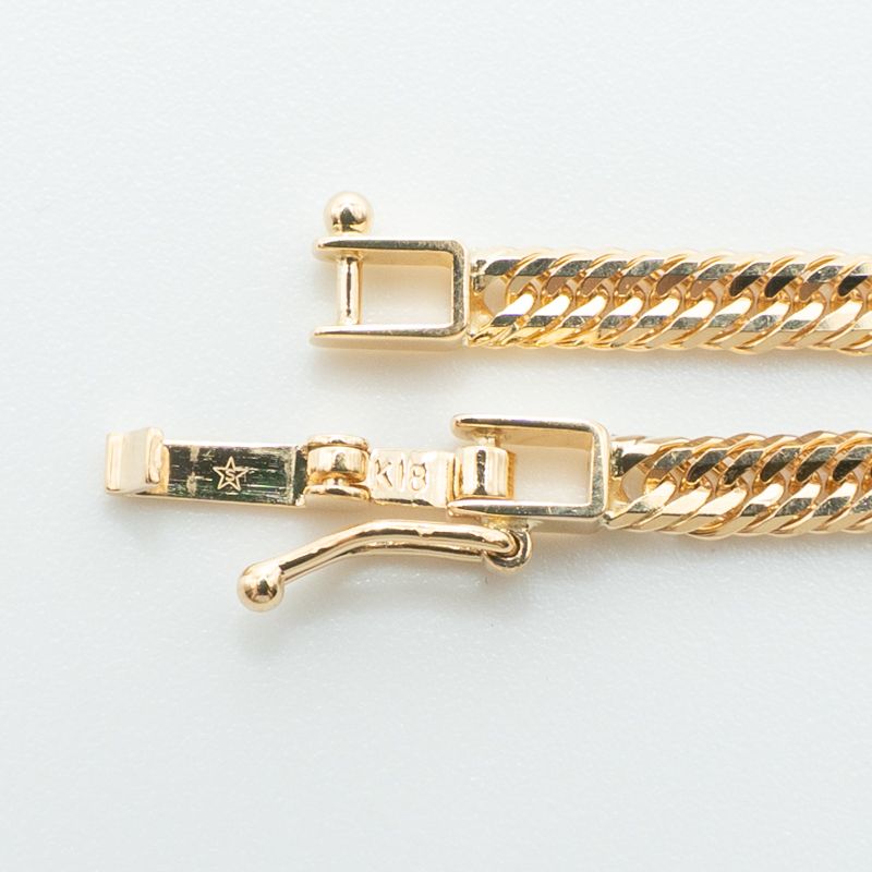 18金素材で製造された、12面カットトリプルの喜平ブレスレットです。