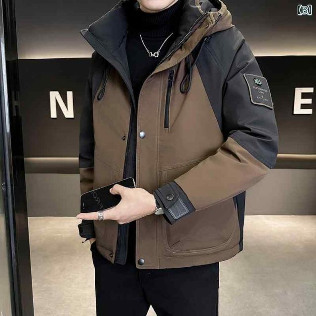 3 XL 秋冬 コーデ メンズ 服 シンプル ファッション オシャレ 大人 かっこいい 大きいサイズ ストリート 紳士服 アウトドア ダウン ジャケット 厚手 ゆったり ハイエンド 防寒 フード付き ワークジャケット