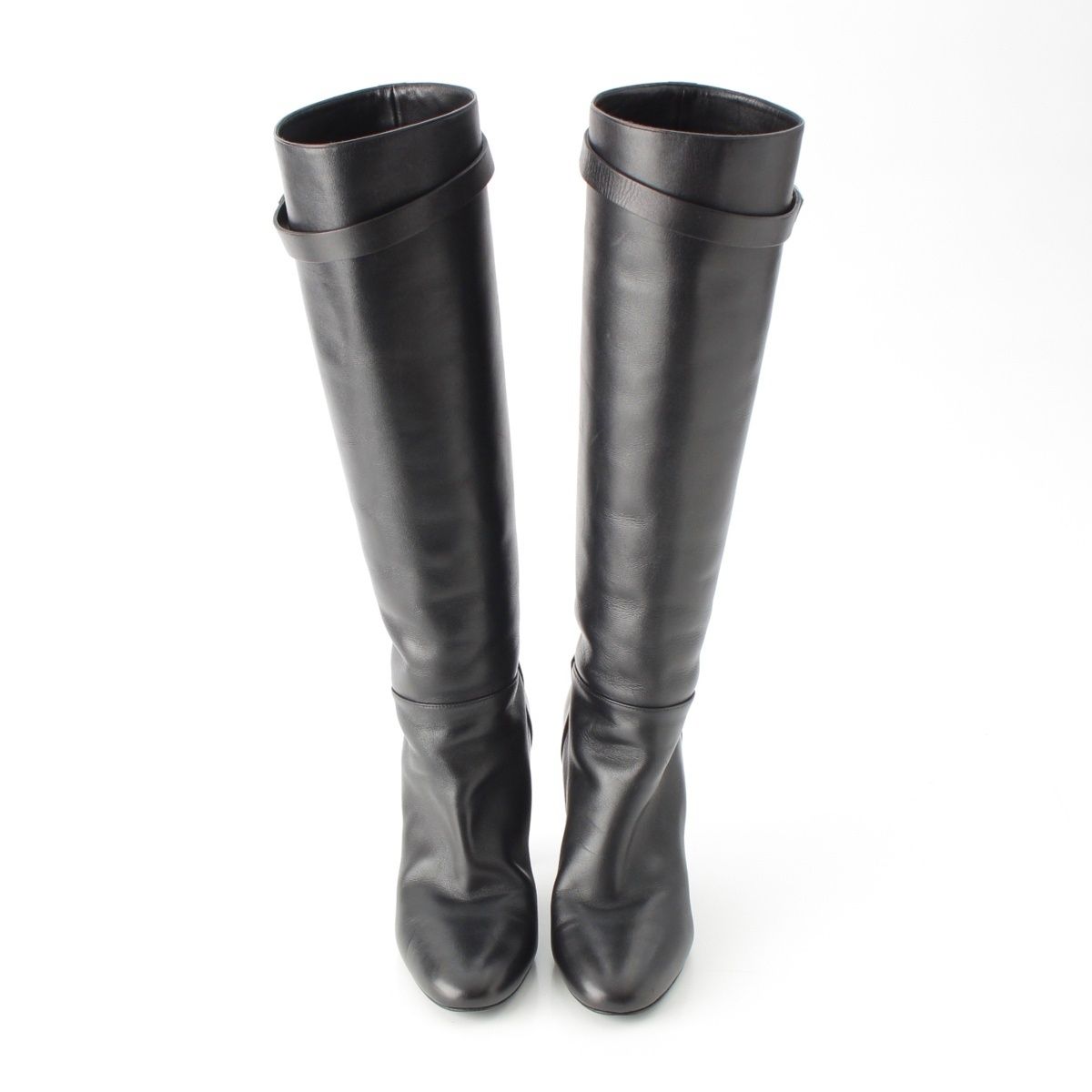 エルメス STORY ストーリー レザー ケリー金具 ヒール ロング ブーツ ブラック×シルバー 36