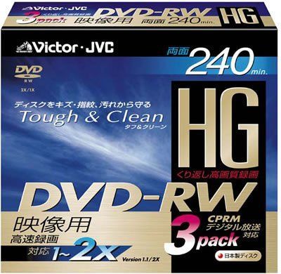 日本ビクター -RWディスク(forVIDEO)2倍速HG両面3枚パック VD-W240HG3