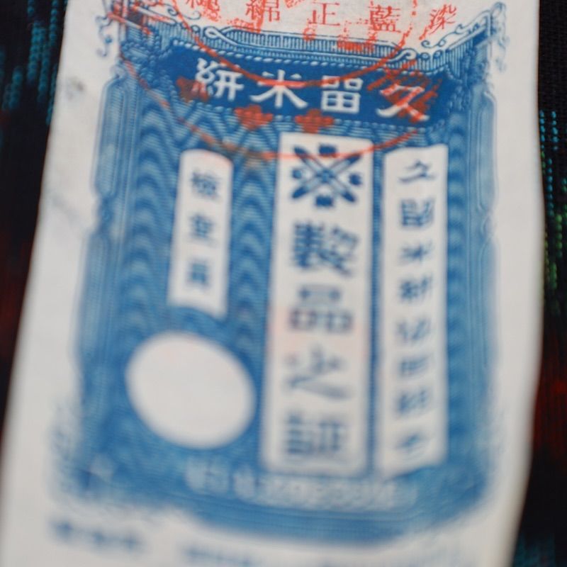 久留米絣 未仕立て 手織り 藍 珊瑚朱 緑 幾何学模様 B 795