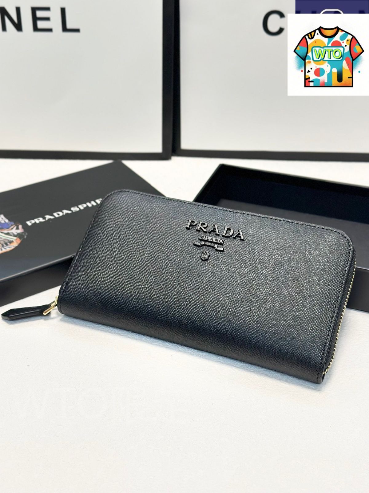 プラダ (Prada) の爆款「クロスグレインレザーウォレット」が登場! クラシックな黒色を採用し、サイズは約 20×10cm で、実用的な収納力と持ちやすさを兼ね備えています。
