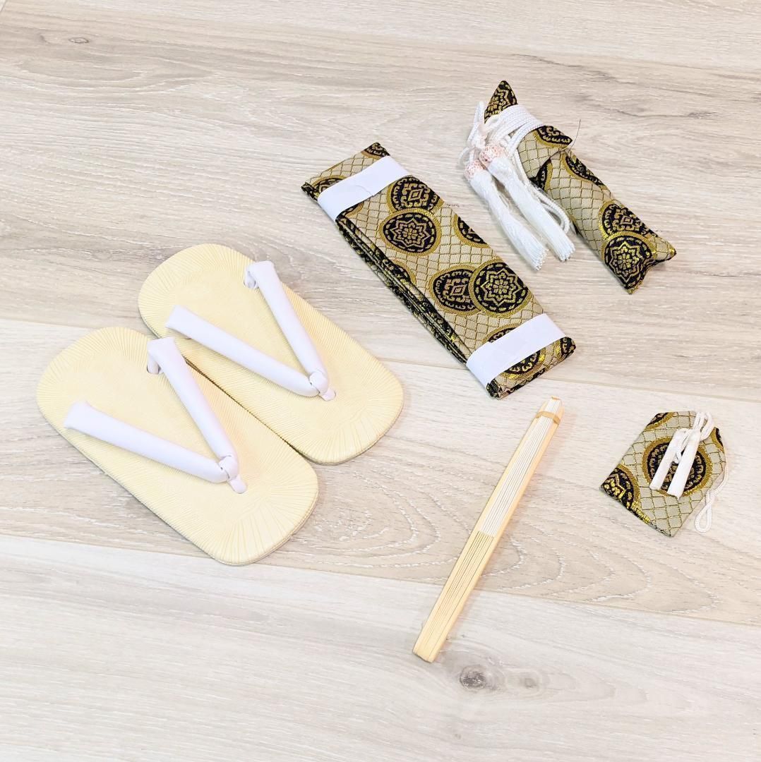 着物・長襦袢・袴・羽織・羽織紐・角帯・模造刀・雪駄・お守り・扇子