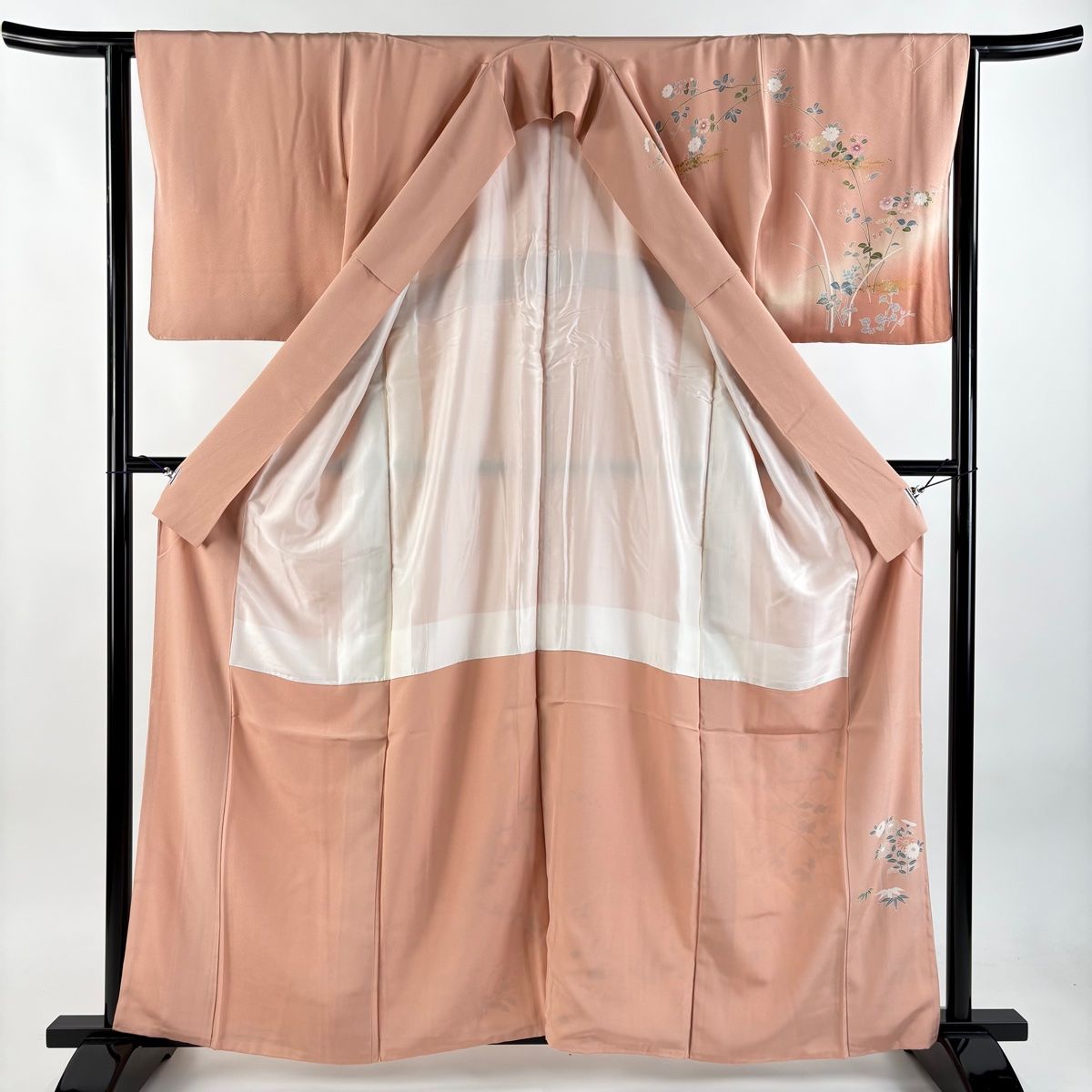 訪問着 身丈160.5 cm 裄丈62.5 S 袷 秋草 流水 金銀彩 ぼかし ピンクベージュ 正絹 秀品