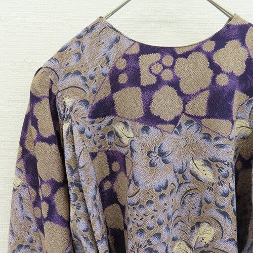 ◎商品名(タイトル):シセンドウ 詩仙堂 ヒトシタムラ ヴィンテージ カットソー ブラウス プルオーバー 七分袖 ちりめん 総柄 [a968970]