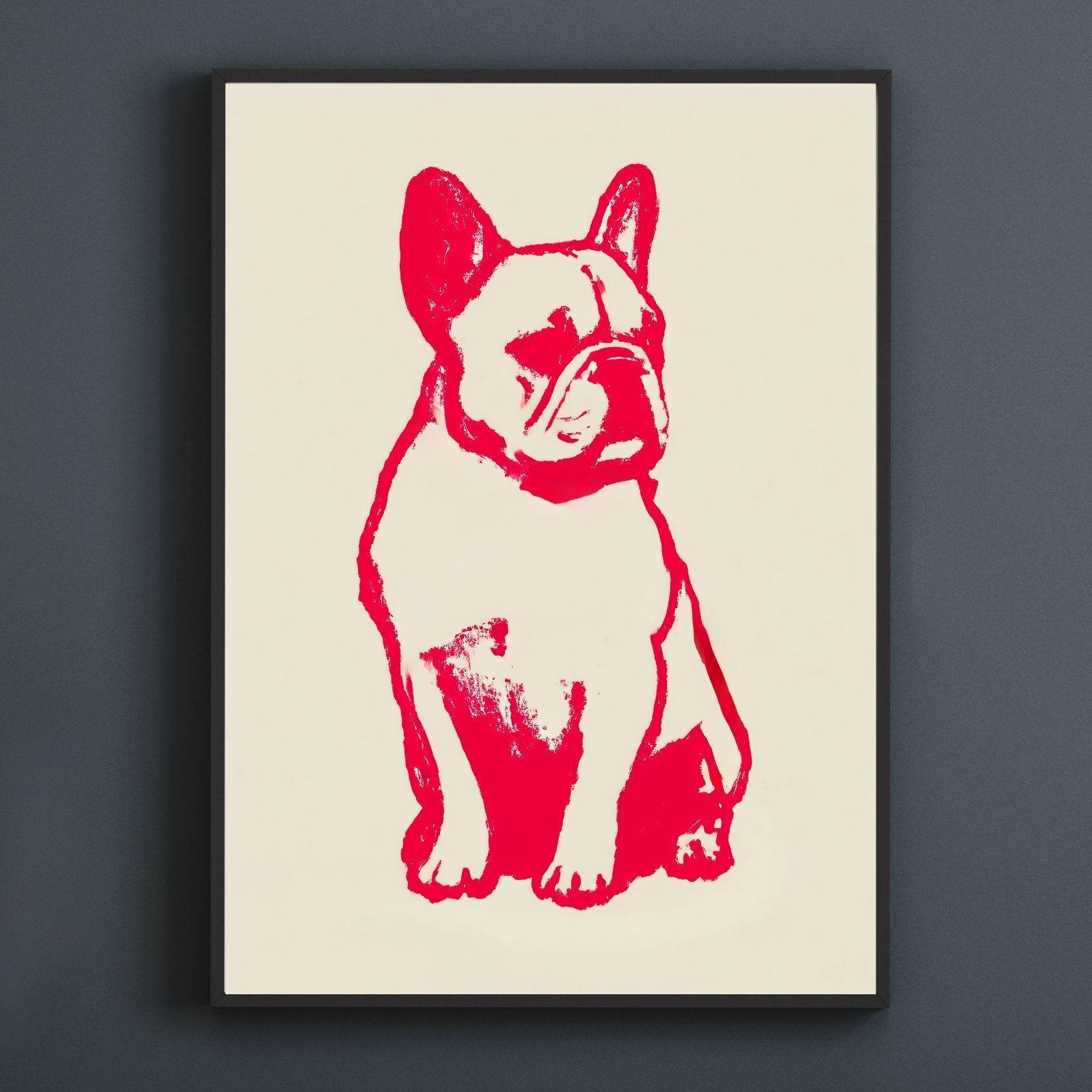 一筆書きのような軽やかなタッチで描かれた、フレンチブルドッグ・フレブル犬のシルエットアートポスターです。