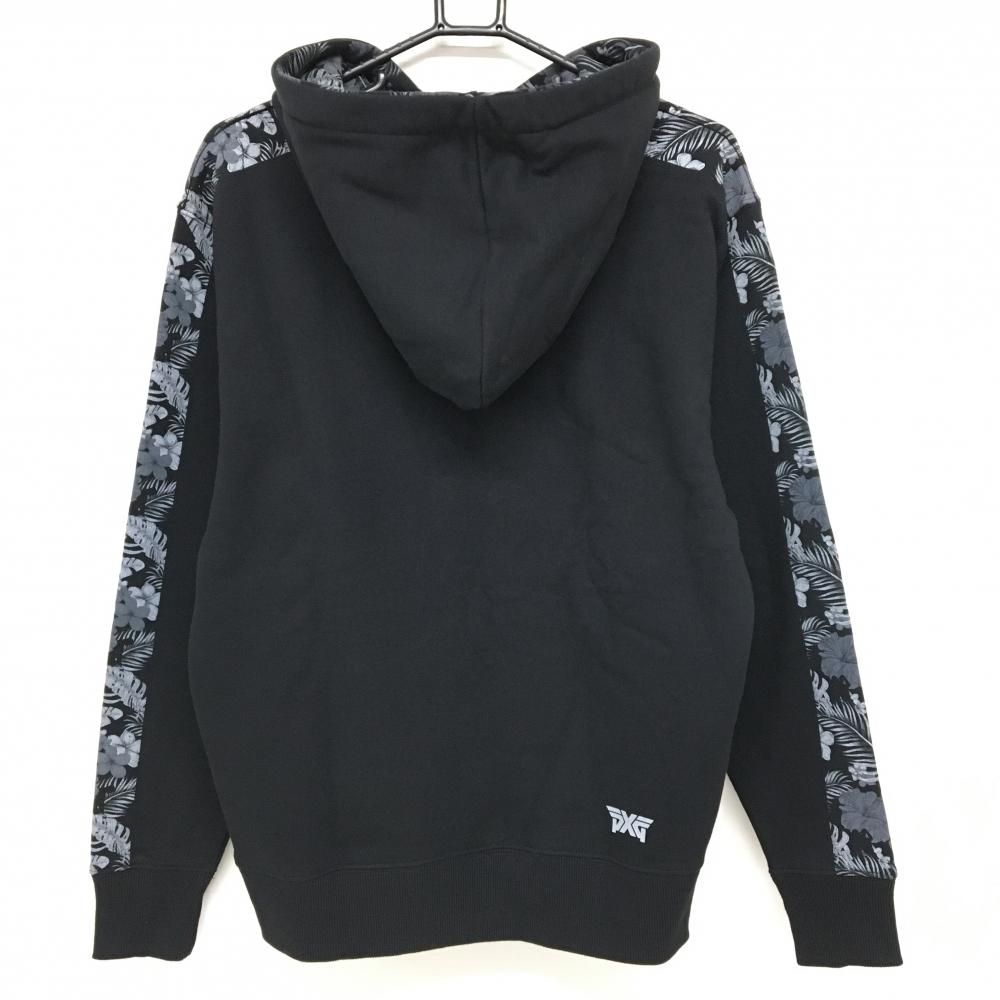超 パーソンズエクストリームゴルフ フード付トレーナー 黒×グレー 一部花柄 裏起毛 レディース 共通サイズS ゴルフウェア PXG