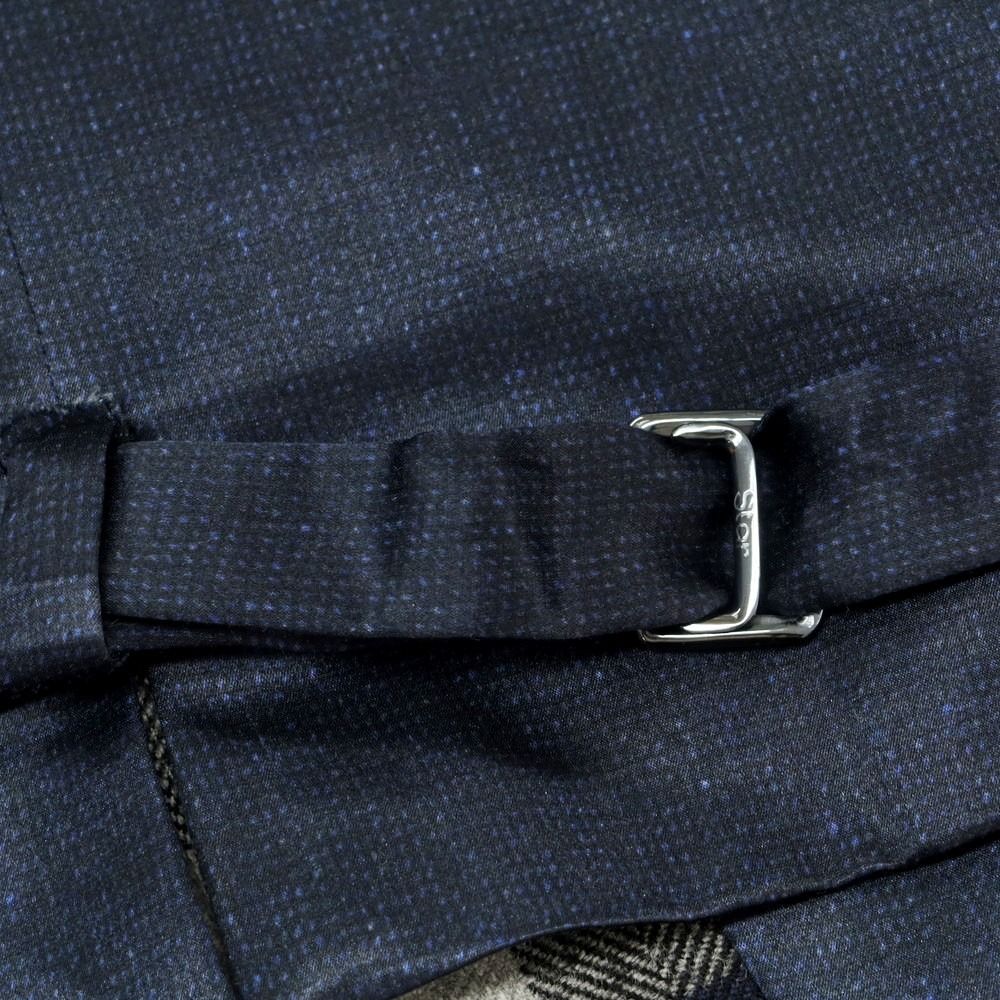 ・ 秋冬向け ・ ウール チェック ・ イタリア製 ・ 透け感 なし ・ 6つボタン ・ 前身ポケット×3 ・ 裾スリット入り ・ バックアジャスターベルト