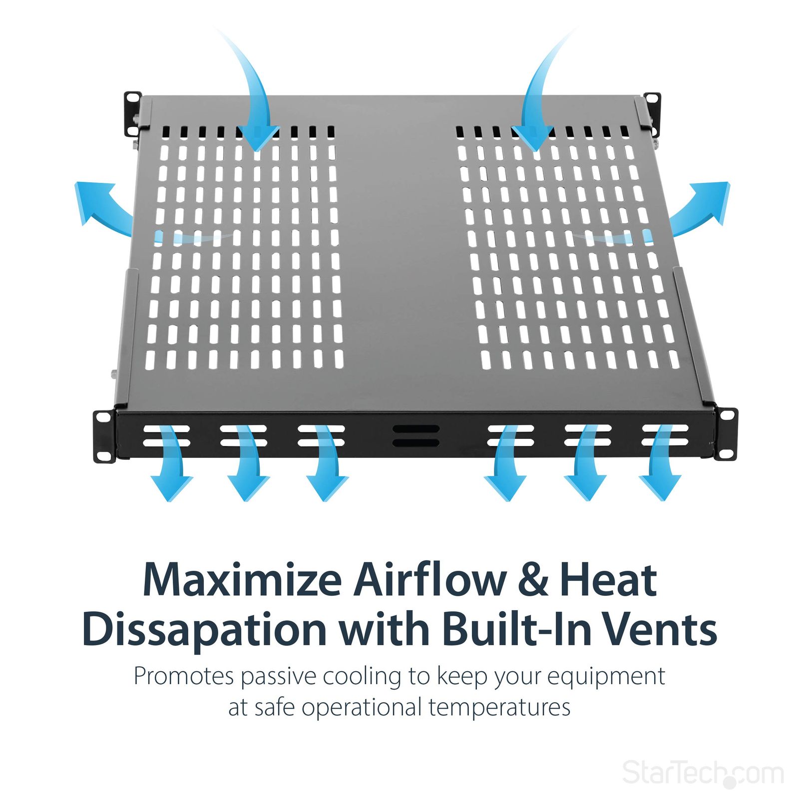 StarTech.com サーバーラック棚板/1U/放熱スリット付/耐荷重150kg/奥行き700mm/取付奥行き495~974mm/19インチラック対応/AV、データ、ネットワーク機器収納用 ラックマウント サーバー シェルフ ADJSHELFHDV