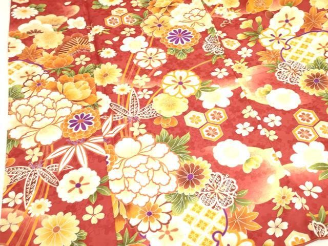 平和屋着物 小振袖 二尺袖 牡丹 亀甲花文 金彩 op