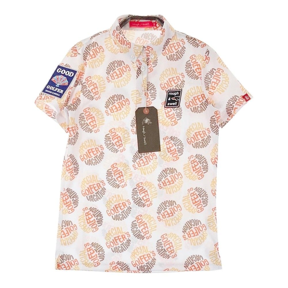 サイズ S ROUGH-SWELL ラフアンドスウェル モデル 半袖 ポロシャツ ボタンダウン カモノハシ 総柄 イエロー系 ゴルフウェア レディース ストスト