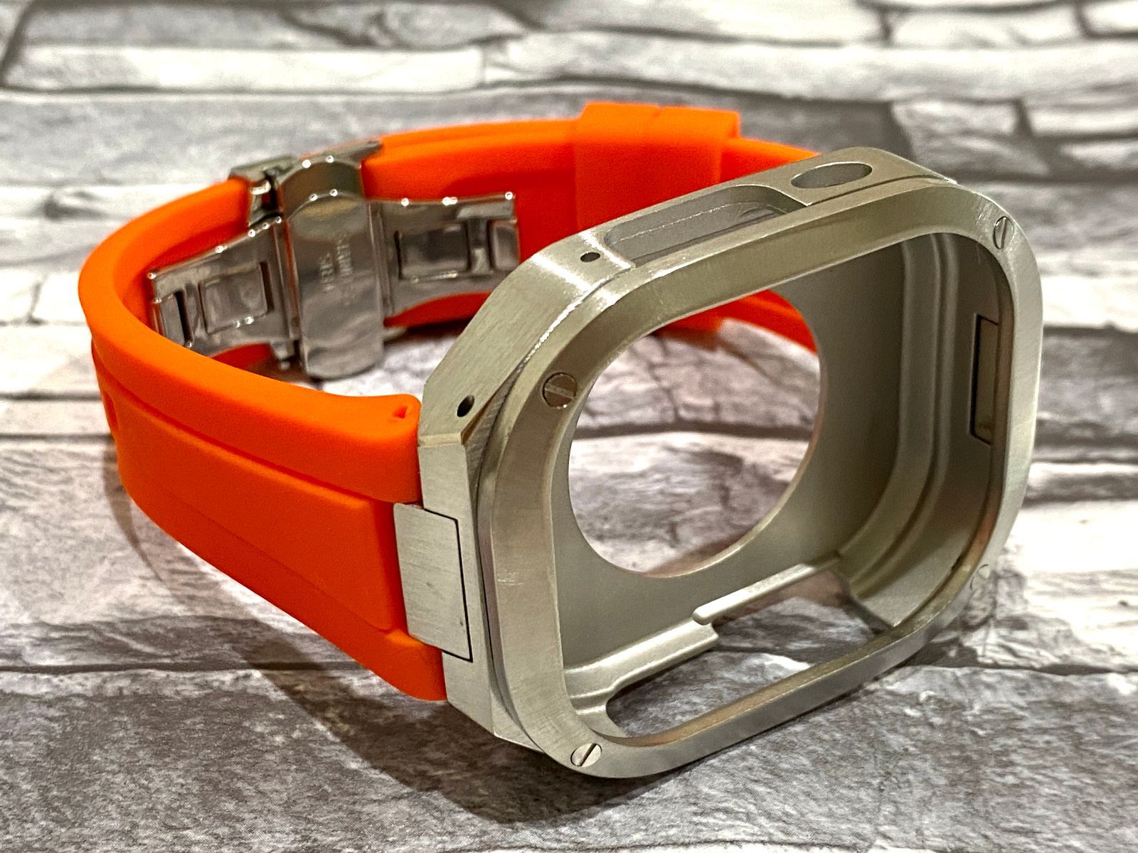 ★アップルウォッチバンド ラバーベルト カバー ステンレス Apple Watch ケース 49mm ウルトラ ultra スポーツ メンズ レディース