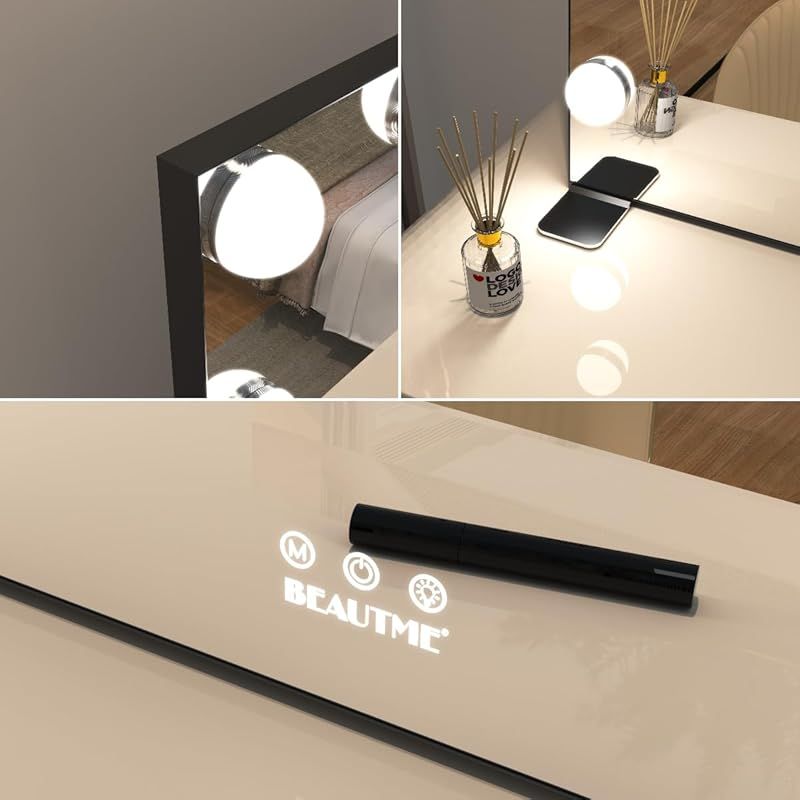 BEAUTME 女優ミラー 卓上ミラー 化粧鏡 ライトモード 明るさ調整 LED電球 付き ハリウッドミラー 台座付き 卓上 壁掛け両用 ブラック 91.1 x 61.6 cm 0