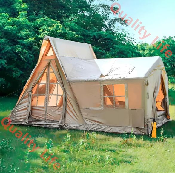 エアーテント 大型 8~10人用 インフレータブルテント 煙突穴付き 12 6 m オックスフォード ロッジテント ファミリーテント キャンプテント 組立簡単 アウトドア 遮熱 耐火 防蚊虫 4シーズン