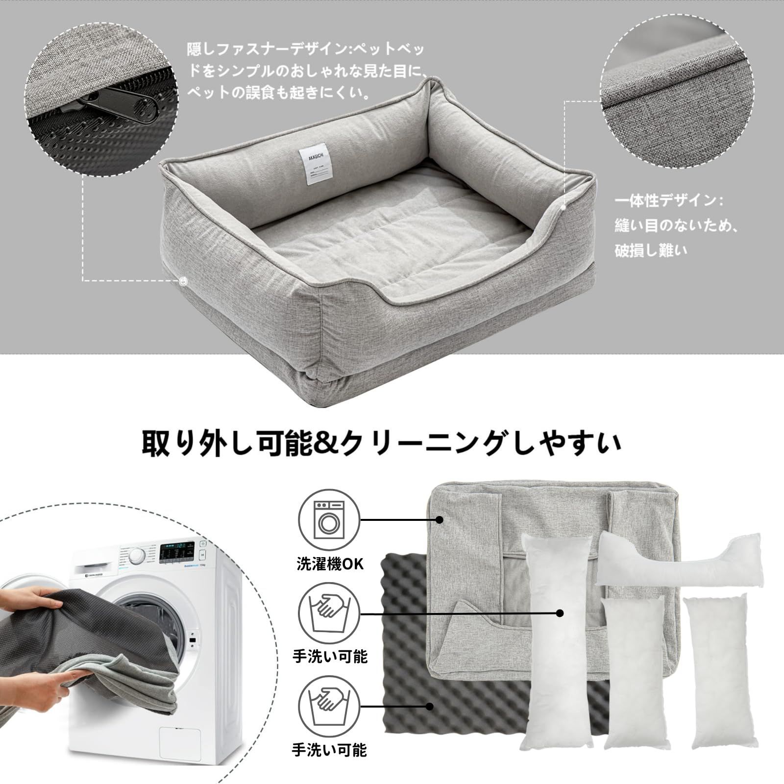 フワフワ 四角型 洗える 夏 四季適用 ペットソファー 姿勢矯正 防寒 猫ベッド 耐噛み素材 ペットベッド 滑り止め 取り外し ベッド サイズM 犬 L AKAGIICHI グレー
