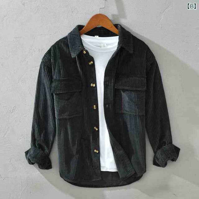2 XL メンズ ファッション 服 男性用 オシャレ シンプル 大人 かっこいい 大きいサイズ ストリート 紳士服 コーデュロイ シャツ コットン 長袖 カジュアル ワークウェア ジャケット
