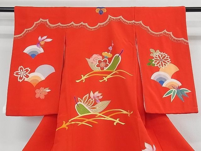 染刺工芸 大羊居 東京友禅 子供 七五三 女の子 3歳 祝着 駒刺繍 吉祥花文 金銀糸 3 kh 1798