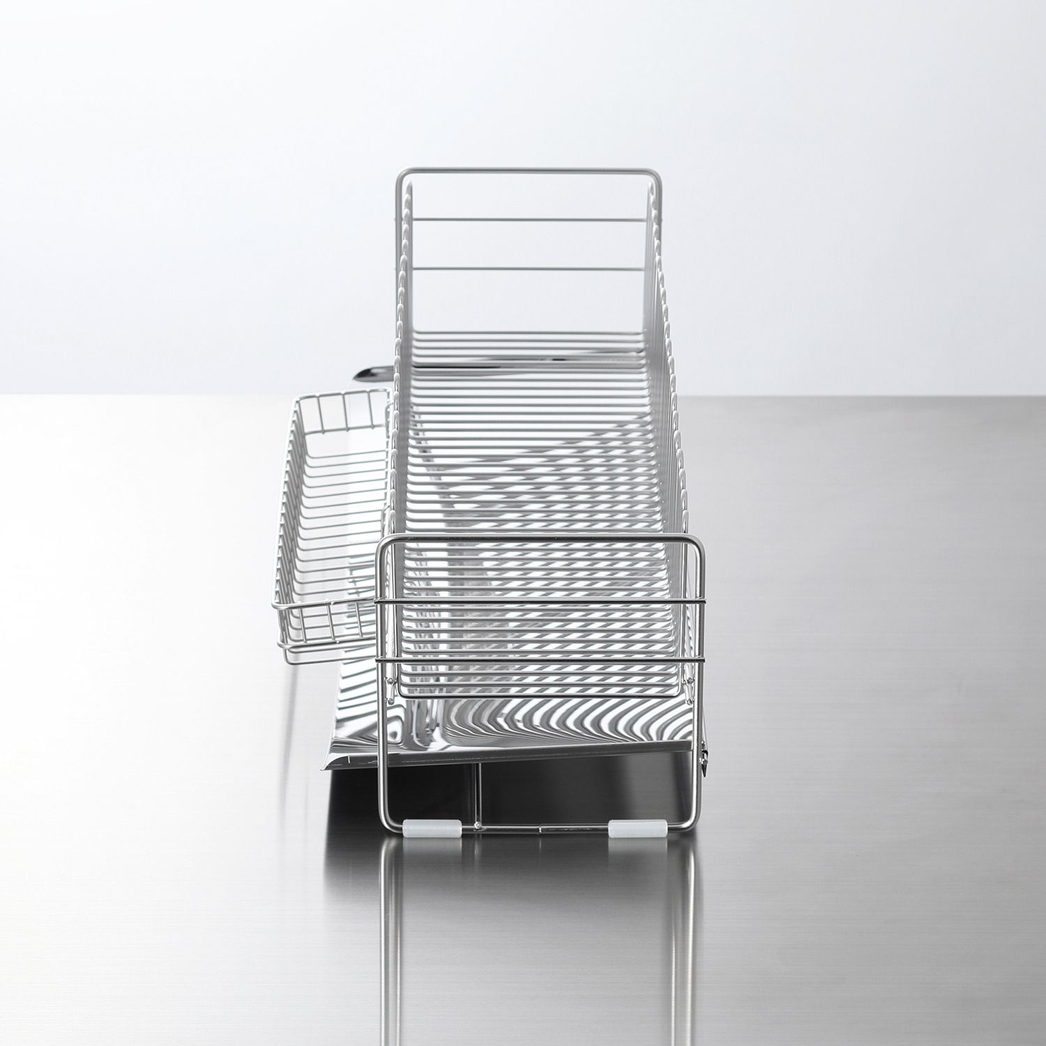 これにより、大皿もきっちりと納まりやすく、垂直に立てられるので水切れが早く、安定感もあります。