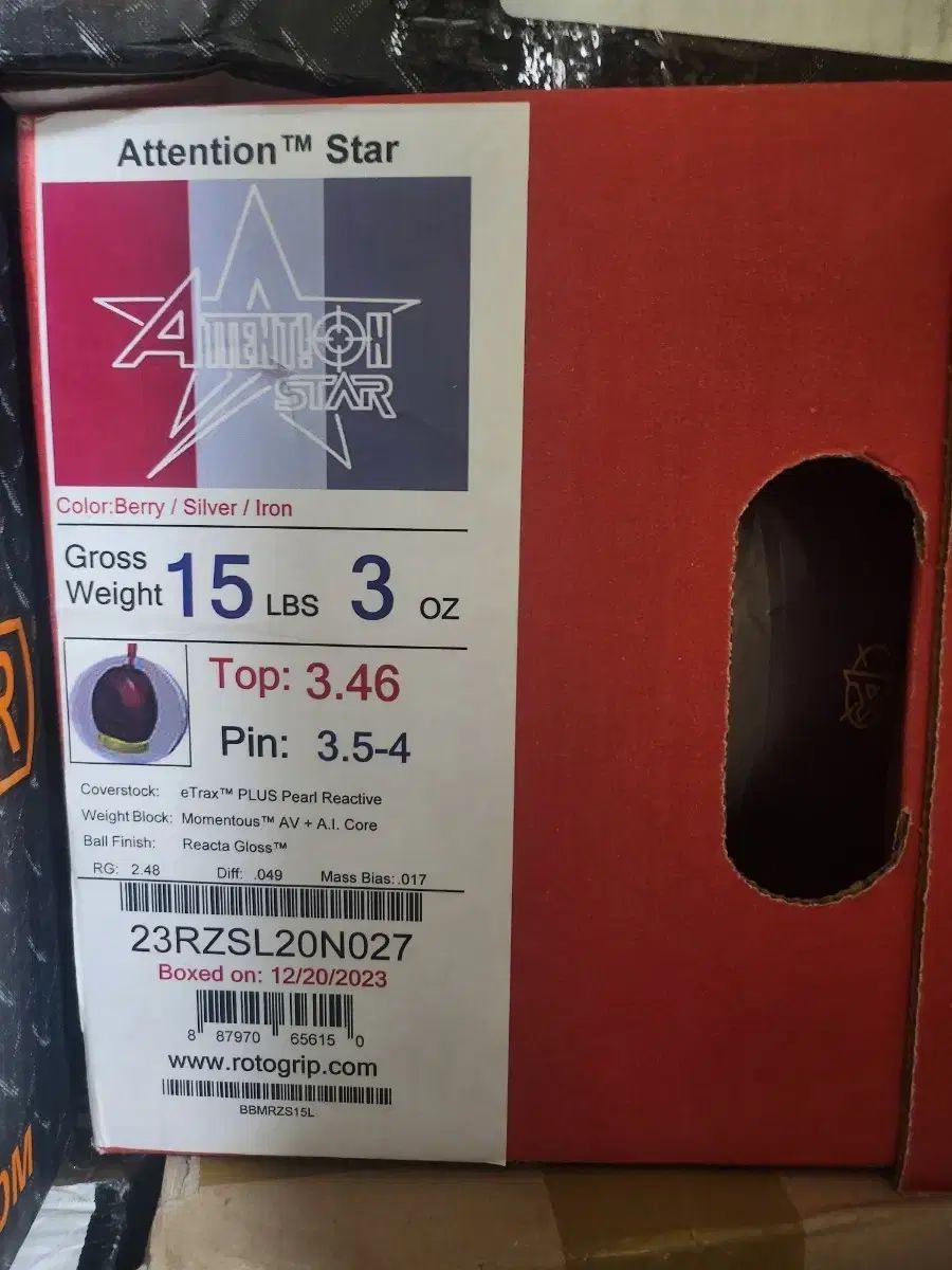 未開封 ローテングリップ Attention Star 15パウンド ボーリングです。初 リリースされた オリジナル モデルです。詳細 スペックは 写真 参照 お願いします。 コメント 無ければ 馬狼 照英 安全決済してください! 参考までに 無くては 売れなかったボールです。終盤の角度が良いです。