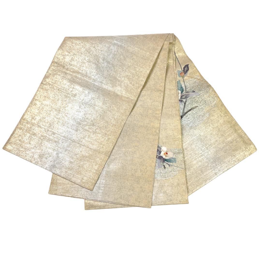 袋帯 つづれ織 洒落帯 正絹 金銀糸 椿 着物 kimonolove リユース品 オゾン消臭サービス AO-0560