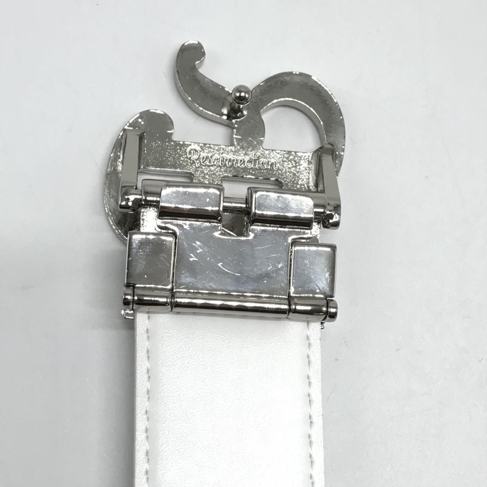 超 レザレクション ベルト 白×ブルー 総柄 ロゴバックル レディース ゴルフウェア Resurrection