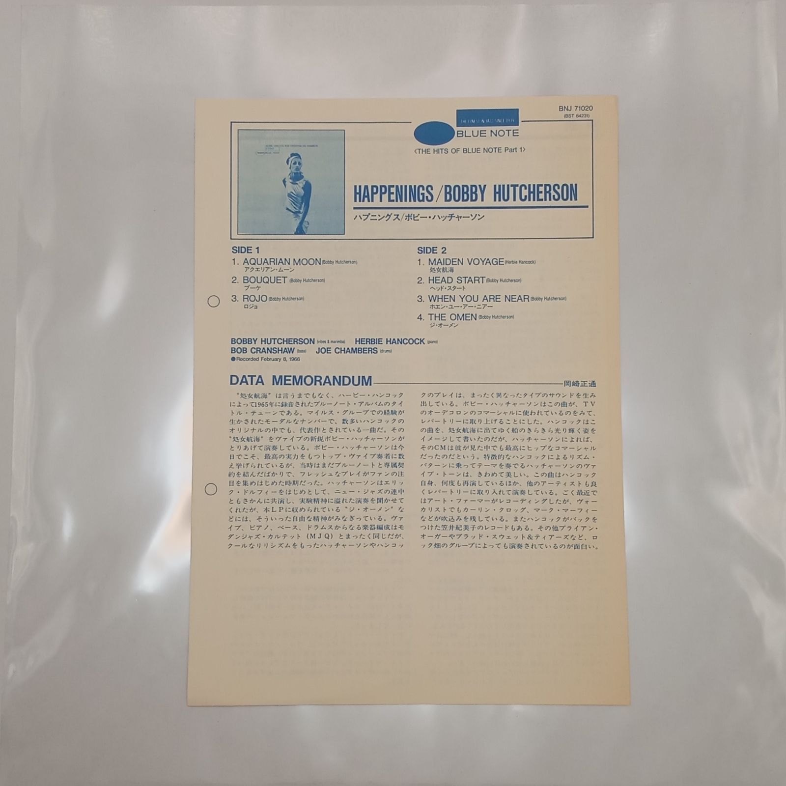 ボビー・ハッチャーソン(Bobby Hutcherson) - ハプニングス(Happenings) - BNJ-71020 - 帯付 見本盤(国内盤)