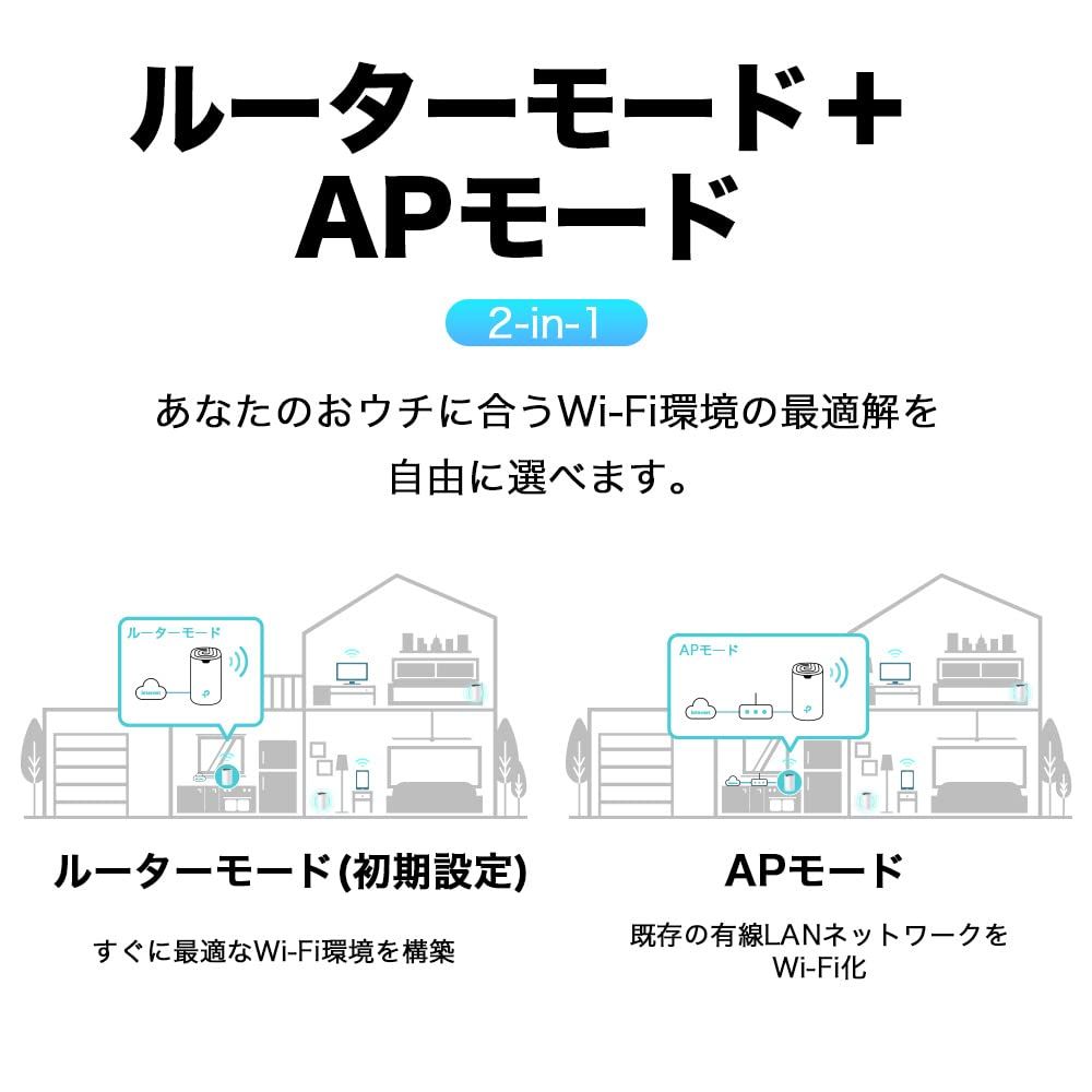 2.4GHz: 600Mbpsの高速通信を可能に[メッシュWi-Fi] コンパクトなお部屋であればこれ1台でも、追加用でもご利用いただけます[高い安定性]