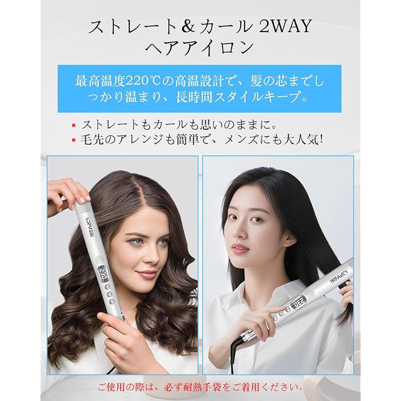 IOFVSSI ストレートアイロン ミニ ヘアアイロン 28 mm ストレート マイナスイオン 2 way イナスイオン発生 温度設定 耐熱ポーチ付 海外対応 男女兼用 白