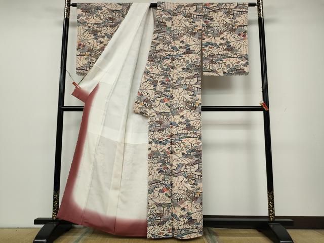 平和屋着物 上質な小紋 型染め 風景草花文 鬼しぼ縮緬 正絹 ut