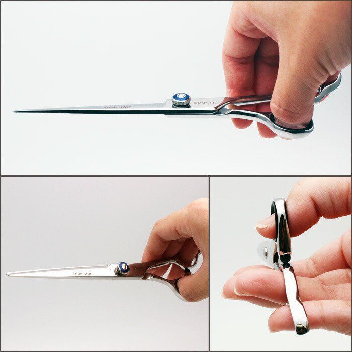 飾りネジの藍色もぱっと目を引く、洗練された美しいデザインのシザーです。